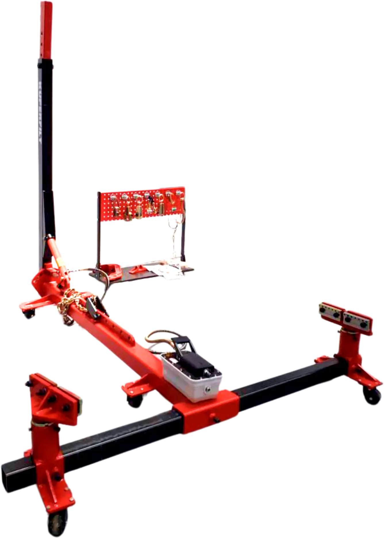 El banco de estirado KPM STD 10 no solo destaca por su potencia, sino también por su operatividad eficiente en el taller. Para facilitar el flujo de trabajo, el equipo incluye un tablero completo con accesorios que permite mantener todas las herramientas organizadas y listas para su uso inmediato.Este conjunto integral incluye: