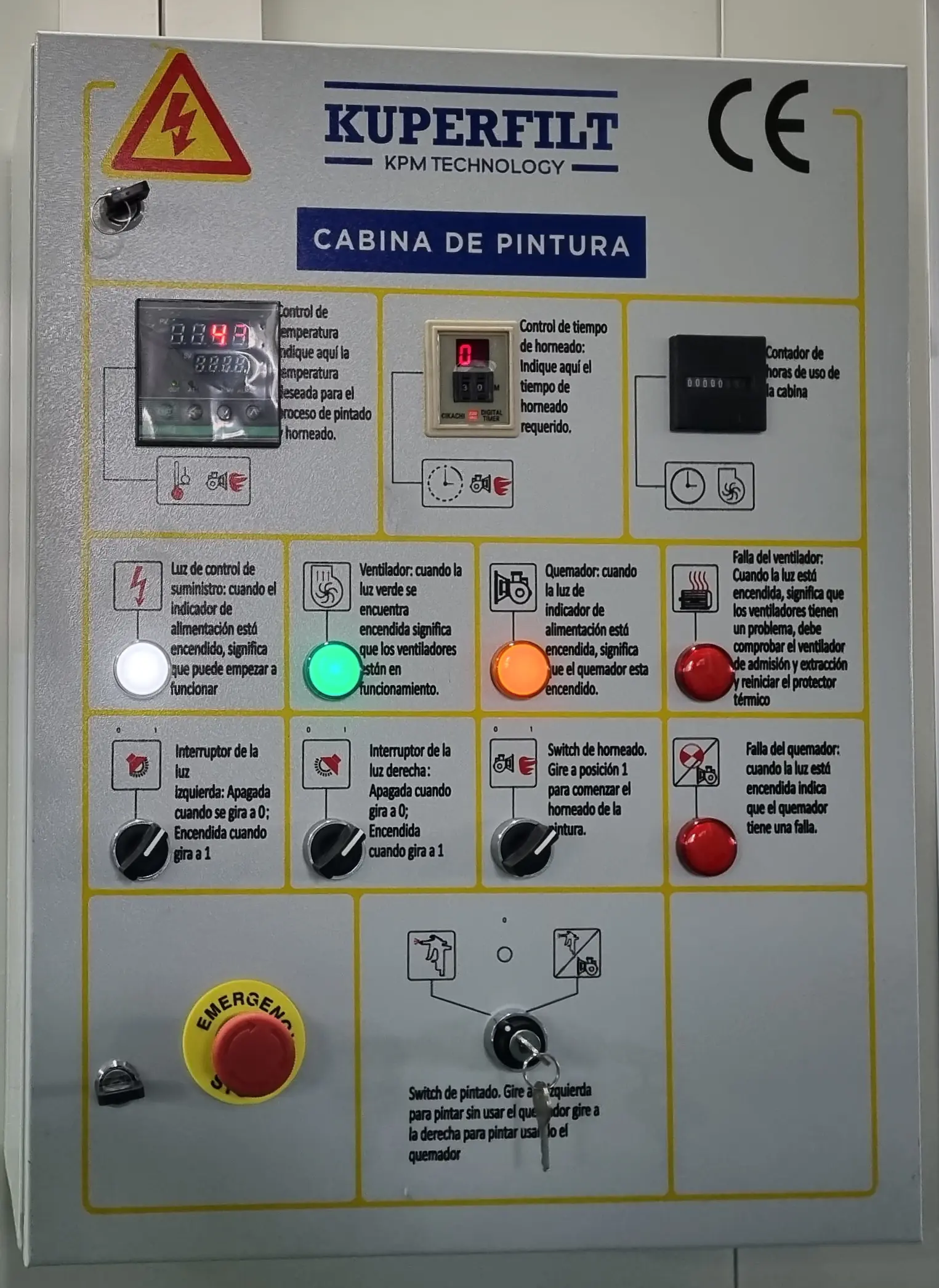 Nuestra cabina KPM Clase C integra un centro de control inteligente diseñado para maximizar la eficiencia y calidad en cada acabado. Desde un solo panel, usted gestiona todas las funciones críticas del equipo de forma intuitiva: