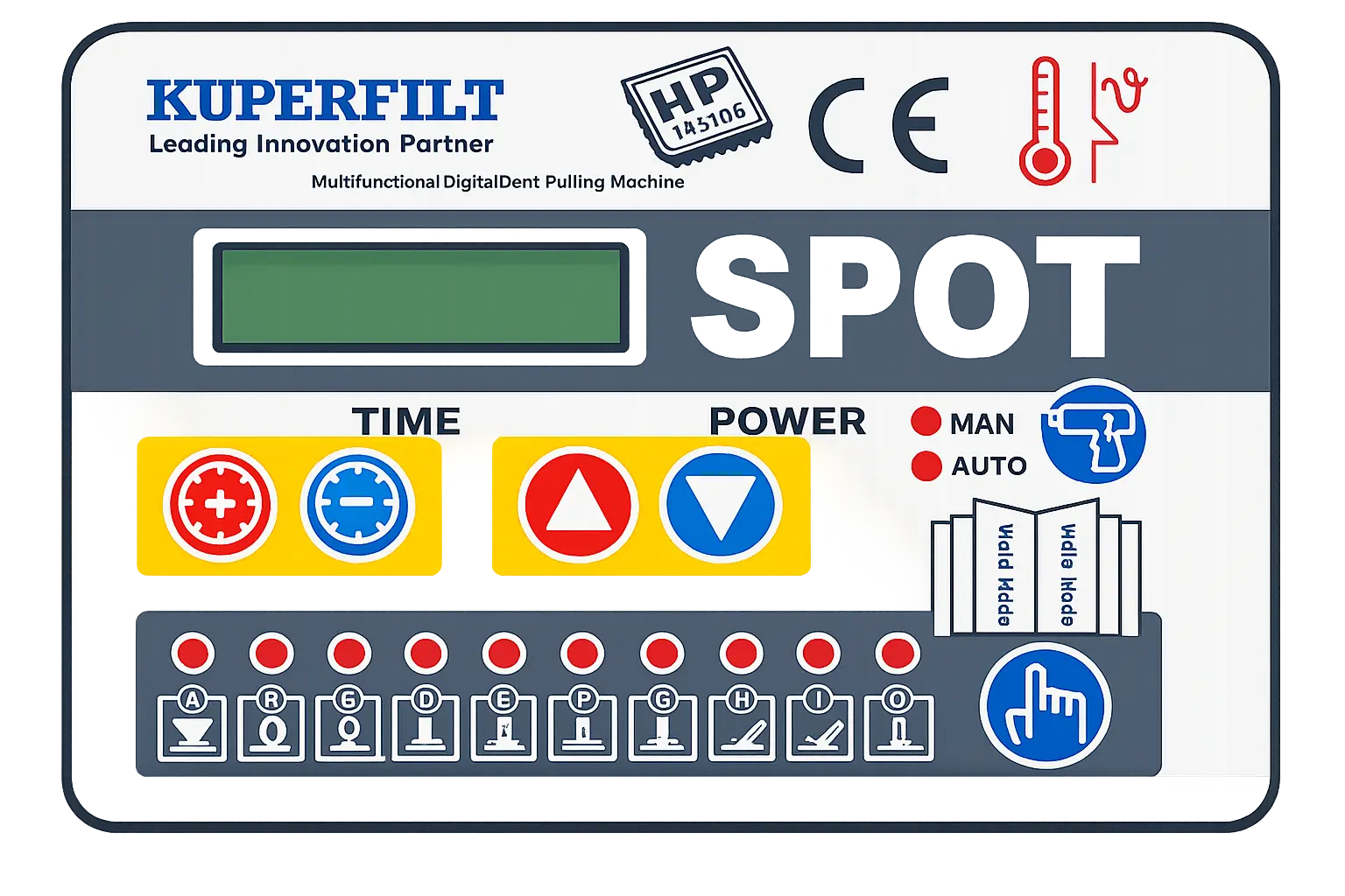 Con una potencia de 11 kW y una corriente máxima de 2200A, este equipo digital permite trabajar sobre chapas de 0.8 a 1.0 mm de espesor con un control absoluto. Su interfaz permite regular el tiempo de soldadura (0-1000 ms) y elegir entre múltiples funciones, desde la soldadura de estrellas y arandelas hasta el calentamiento con varillas de carbono para la contracción de metal. Gracias a su sistema de protección térmica y su diseño ergonómico montado sobre un carro con bandejas organizadoras, la E-DIGI SPOT combina seguridad, movilidad y versatilidad, garantizando acabados profesionales en cualquier intervención de desabollado.
